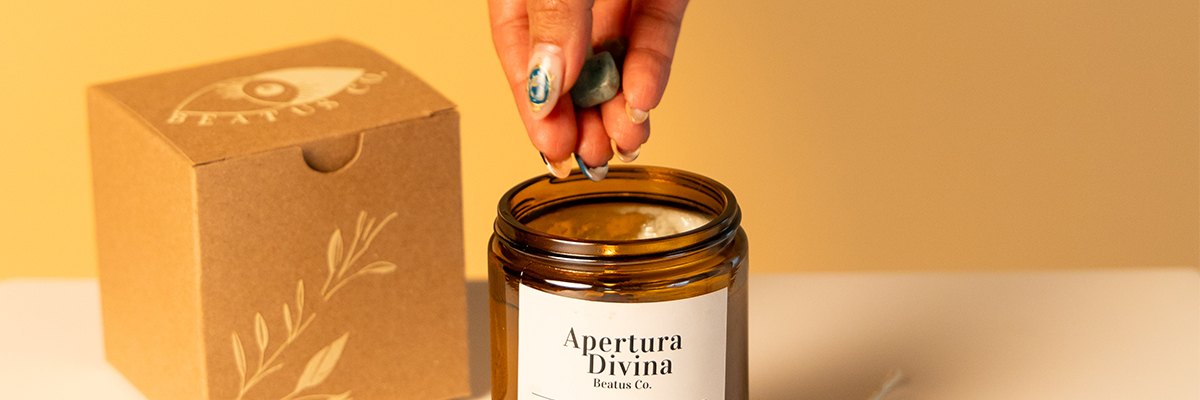 Hecho a mano con intención. Cada creación está elaborada artesanalmente con cera de soya, cuarzos y esencias naturales, intencionada con amor y propósito.